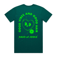 Good Vibes & Good Hair Tee - Green Print